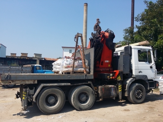 Извършва услуги със специализирани камиони с кранове (до 24м), фадроми и мотокари